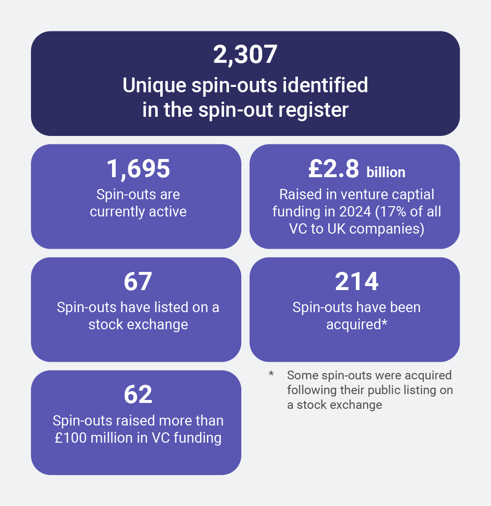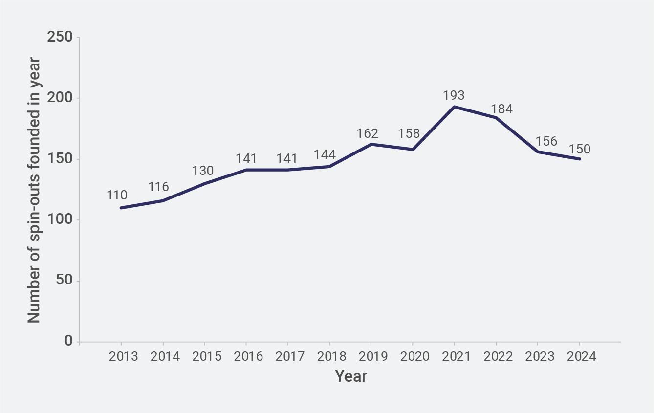 The data and insights presented are also enriched with diverse examples of spin-out companies from our universities.
