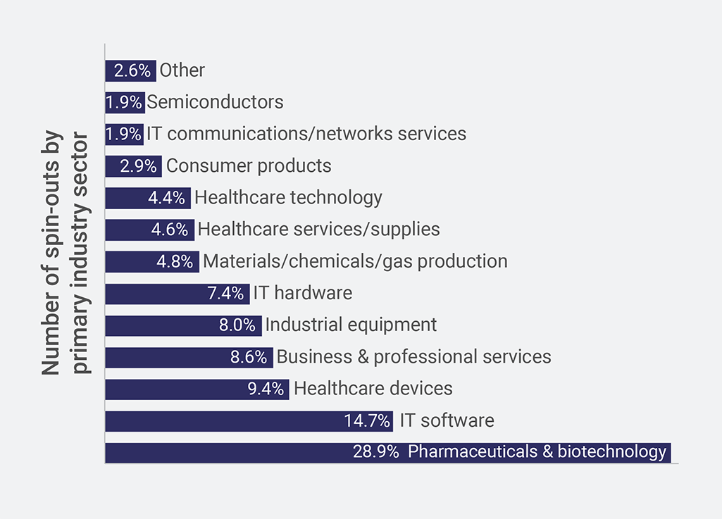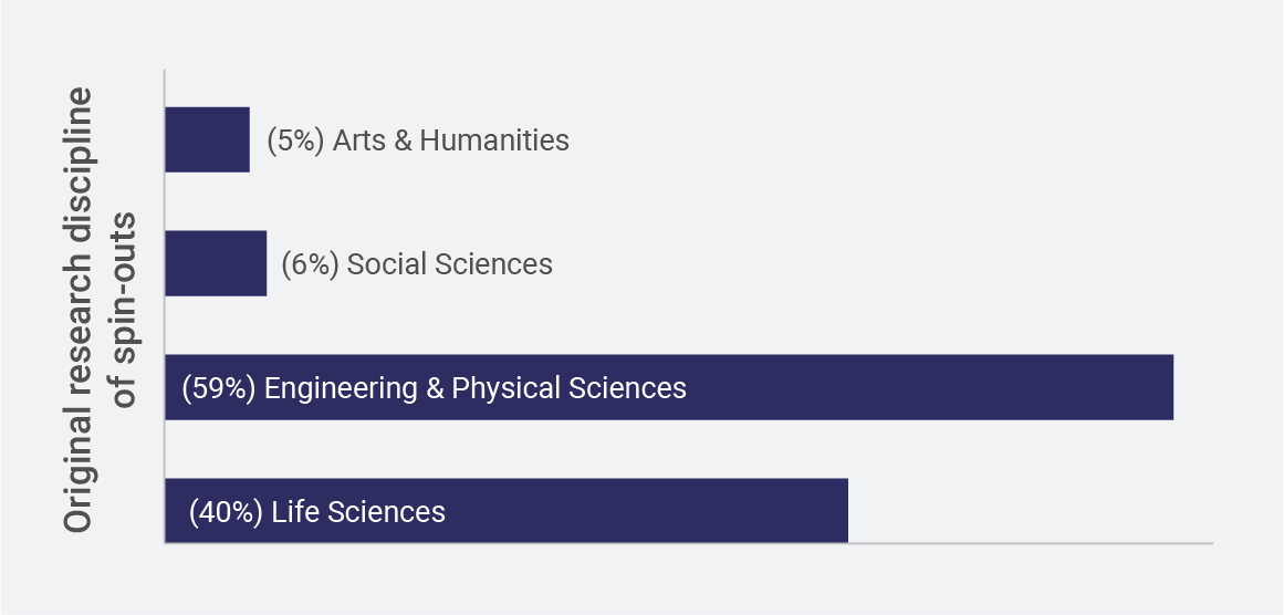 Spin-outs often extend beyond their academic origins, applying knowledge and innovation to sectors that are not directly tied to their founding discipline.