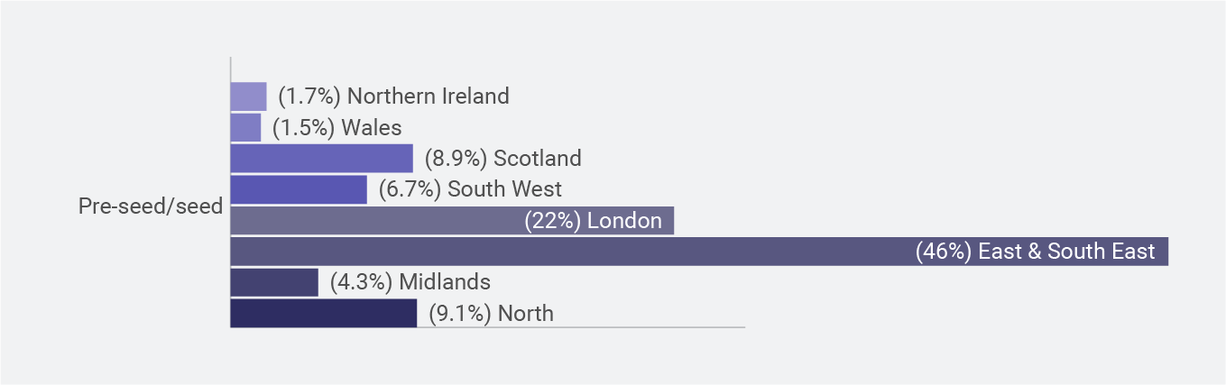 Figure 8c: Pre-seed and seed investment across the nations and regions of the UK